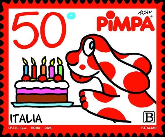 Mais en 2025, année où Pimpa fête ses 50 ans, le nombre d’initiatives en l’honneur de la chienne à pois a augmenté de manière exponentielle. En mars 2025, par exemple, la poste italienne a émis un timbre spécial pour célébrer cet anniversaire, dans le cadre d’une série intitulée « Excellence du patrimoine culturel italien ».