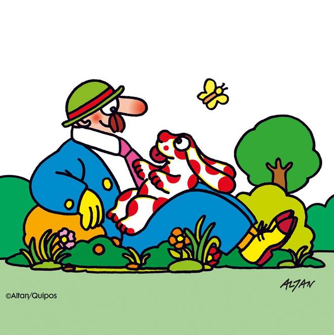 En 1975, par un après-midi maussade à Milan (bon, on ne sait pas quel temps il faisait, mais c’est comme ça qu’on aime l’imaginer !), une petite fille a demandé à son papa de lui dessiner quelque chose. Le père fit ce qu’on lui demandait : il prit une feuille blanche et griffonna quelques éléments – un bateau et un soleil – suivis d’un chien aux yeux exorbités et à pois. Ce papa n’était autre que le dessinateur italien Francesco Tullio-Altan (plus connu sous le nom d’Altan) et, même s’il ne le savait pas encore, son petit chien avait un brillant avenir devant lui : il allait devenir célèbre dans le monde entier sous le nom de Pimpa.