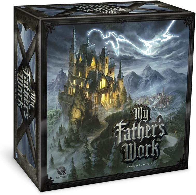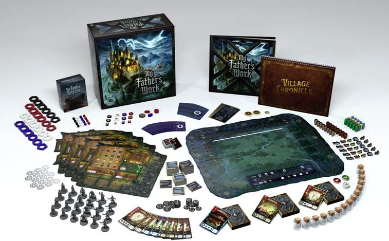 Le dernier titre de notre sélection se distingue par ses matériaux d’une qualité exceptionnelle. My Father’s Work est un jeu compétitif pour 2 à 4 joueurs qui demande un investissement en temps considérable : chaque partie dure environ trois heures.