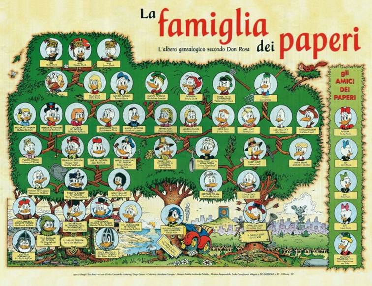 Rosa a également apporté un soin particulier à la réalisation de l’arbre généalogique de Donald Duck, qui présente tous les descendants du canard le plus célèbre de Disney.