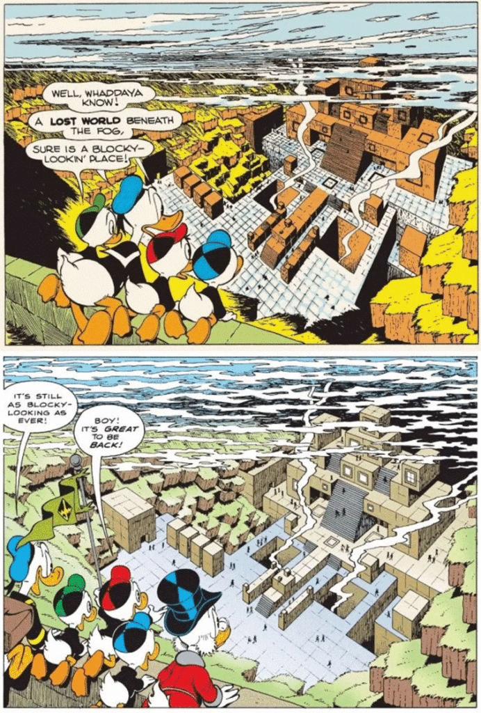 C’était le modus operandi de Rosa : il prenait des œuvres de Barks qui n’avaient apparemment aucun lien entre elles et les reliait entre elles pour ajouter plus de profondeur aux histoires et aux personnages.