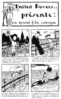 Publiée entre 1926 et 1929, cette première bande dessinée s’intitulait Les Aventures de Totor et racontait les péripéties du personnage principal, Totor, un scout américain. Il s’agissait d’une bande dessinée textuelle, avec des dialogues présentés dans des légendes sous les images, comme c’était couramment le cas à l’époque.