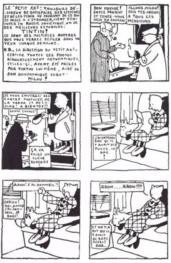 Lors de leur première aventure, dans Tintin au pays des Soviets, les deux compères se rendent en Russie soviétique. Dès le début, Tintin est présenté comme un journaliste, même s’il agit davantage comme un détective, puisqu’il mène l’enquête et fait arrêter des criminels.