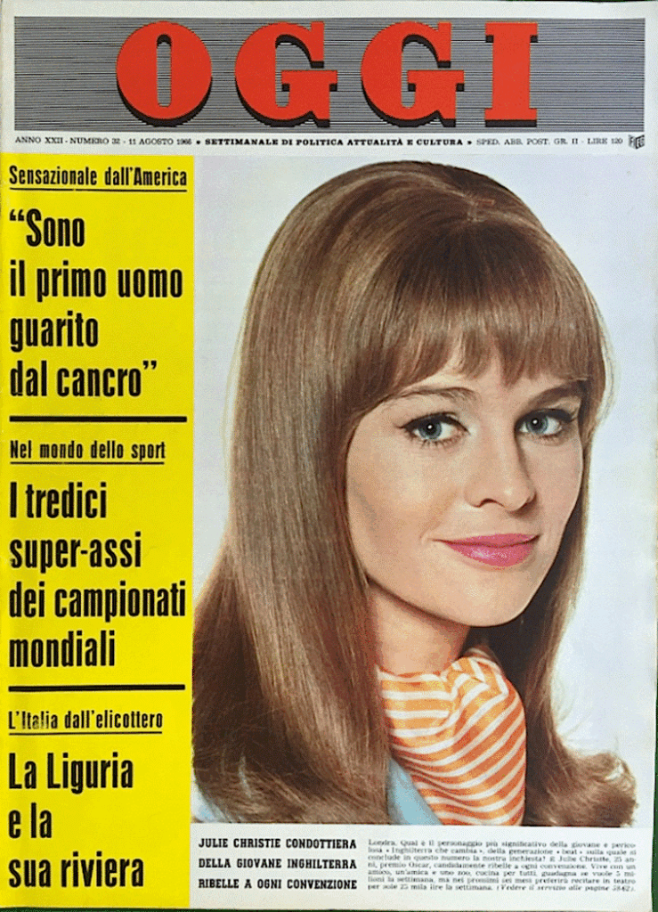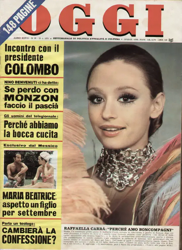 Mais OGGI n’a vraiment pris son essor que dans les années 1960, lorsque l’économie italienne a commencé à prospérer et que les ventes ont explosé pour atteindre plus d’un million d’exemplaires par semaine. La clé du succès du magazine résidait dans son savant mélange d’actualités, de potins et d’articles sur le mode de vie, qui restait axé sur son audience cible – la famille italienne moyenne – et évitait soigneusement la politique.