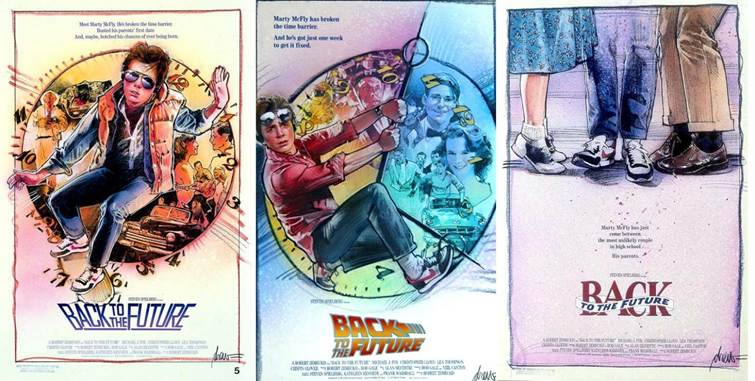 Bien que très réalistes, les images des affiches de Retour vers le futur ne sont pas des captures d’écran du film, mais des illustrations, la marque de fabrique de Struzan. Comme l’artiste l’explique dans cette interview, il ne cherchait pas à recréer la réalité, mais à « faire ressentir aux gens la fantaisie du film ».