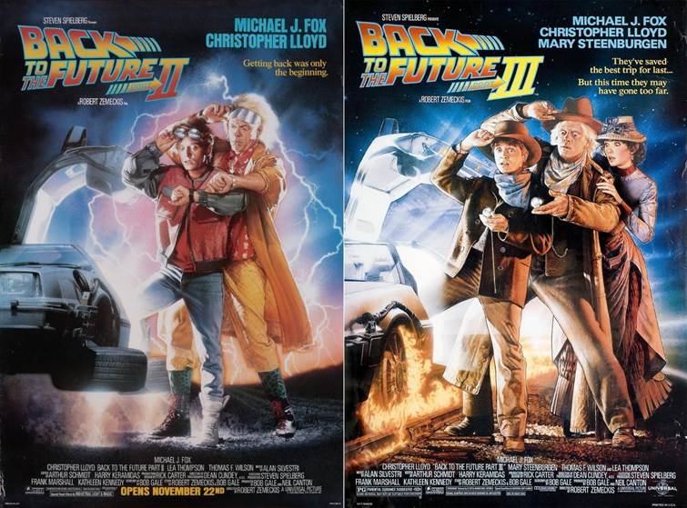 Struzan a également conçu les affiches des deuxième et troisième volets de la trilogie Retour vers le futur, sortis respectivement en 1989 et 1990. Pour celles-ci, il a conservé la même mise en page que pour la première, mais a ajouté des détails faisant allusion aux nouveaux décors temporels des films : l’année 2015 (alors en devenir) et le Far West ! Struzan a également ajouté d’autres personnages importants : d’abord Doc Brown (joué par Christopher Lloyd) pour la deuxième partie, puis Clara Clayton (jouée par Mary Steenburgen) pour la troisième partie.